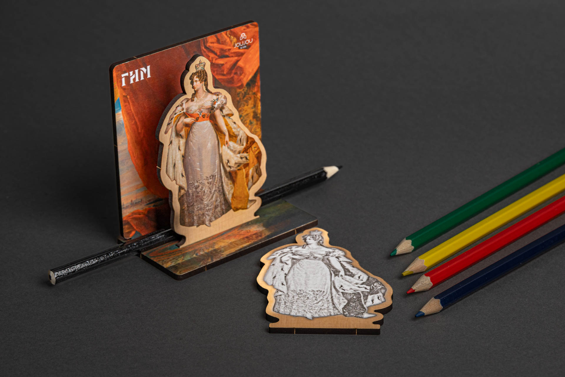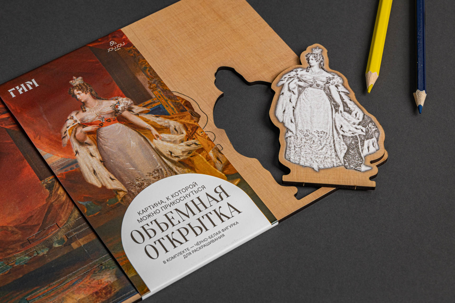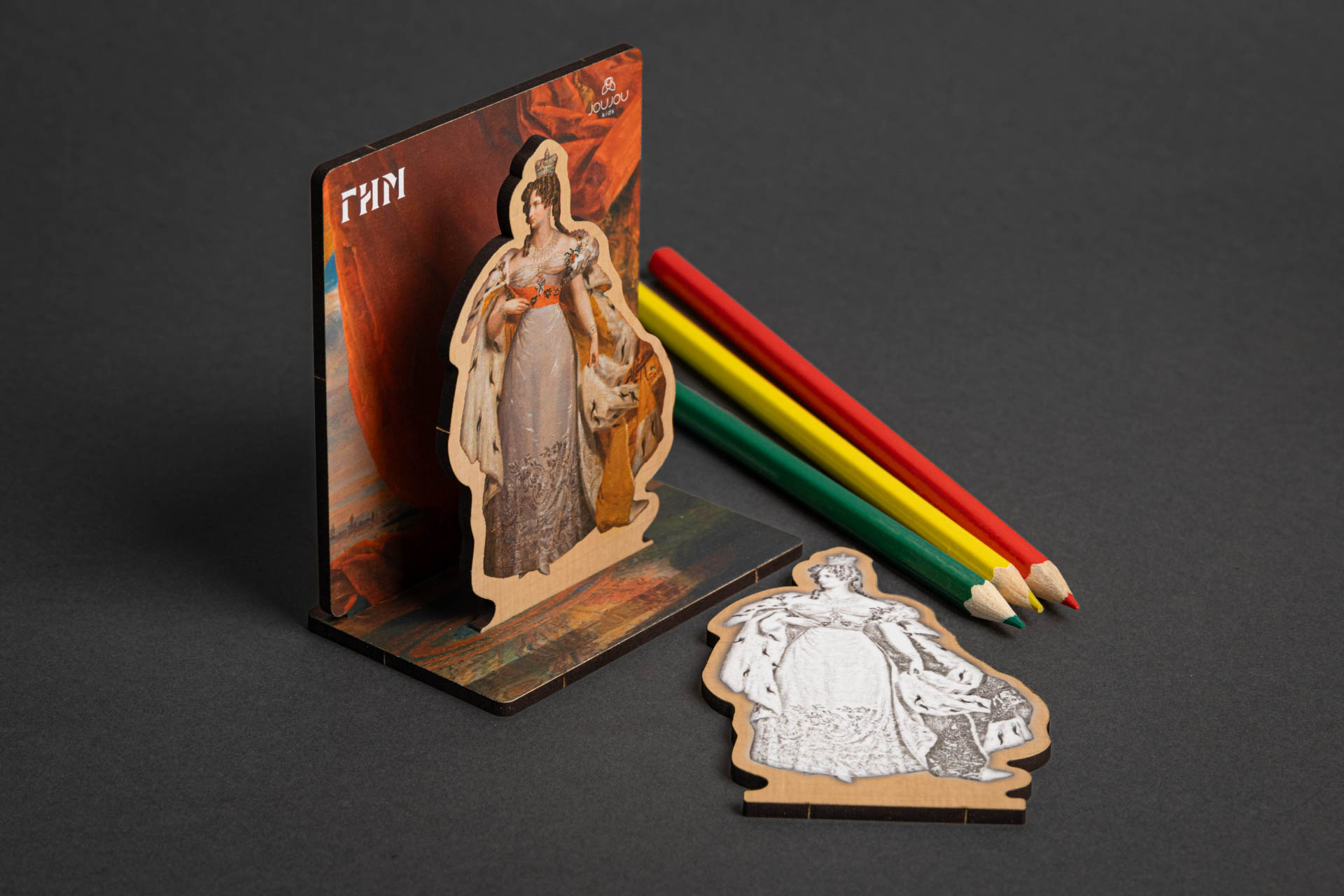 В рамках сотрудничества бренд развивающих детских игрушек и музей подготовили серию объёмных открыток из дерева с портретами Николая I и императрицы Александры Фёдоровны. Каждая открытка выполнена с вниманием к историческим деталям и напоминает миниатюрный арт-объект.