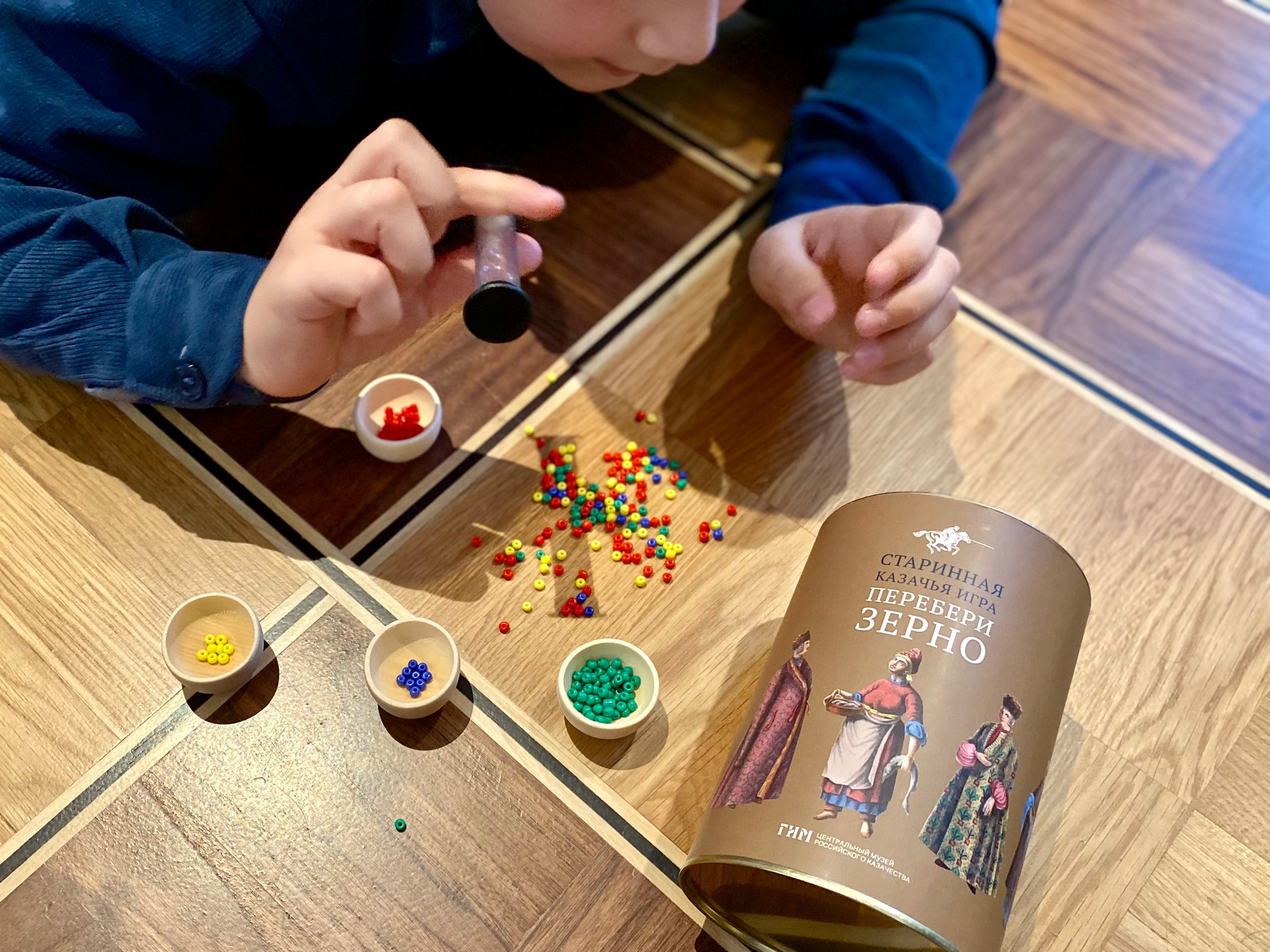 Предлагаем вам сыграть в старинную игру – «Перебери зерно». Цель игры – быстро и ловко разобрать по плошкам бусинки – «зернышки». Кто первый справился с этой задачей – тот и победил!
